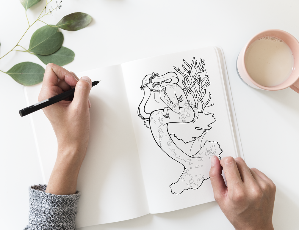 PDF of MerMaiden, a colouring book created with the linework of some of my illustrations from the Mermay challenge.